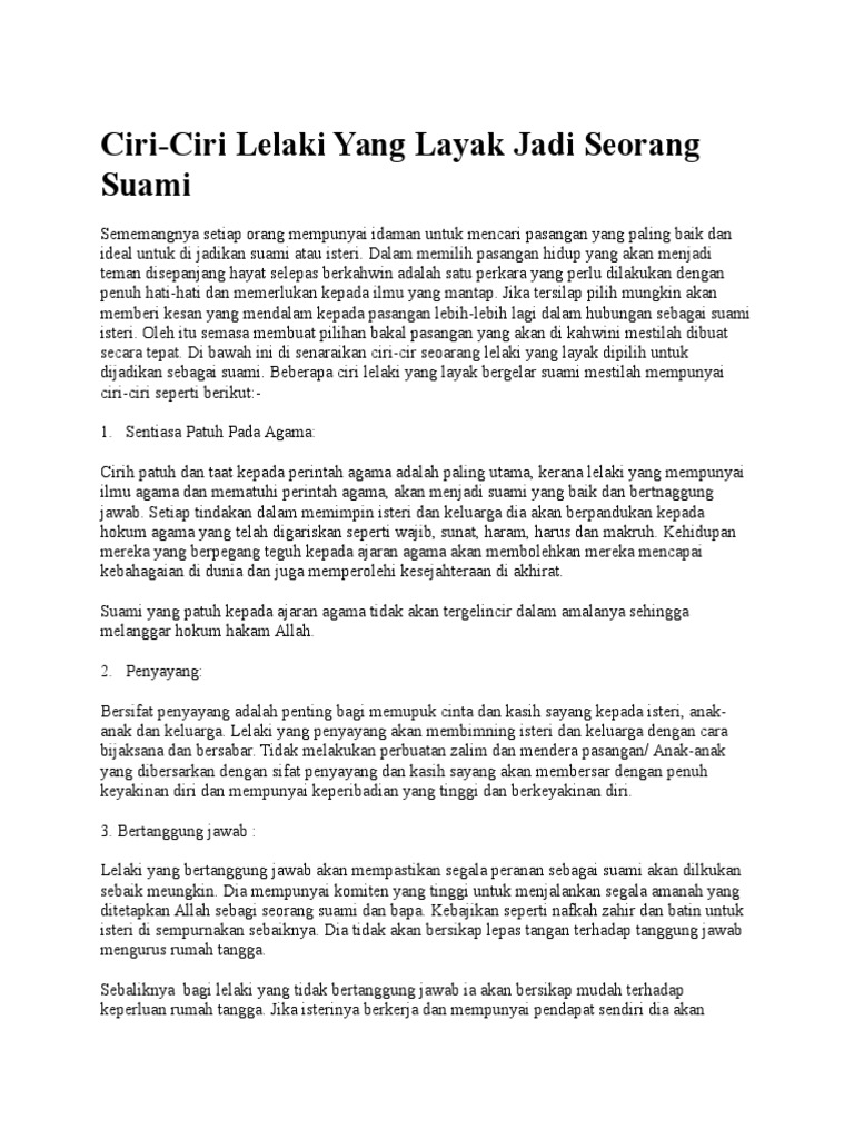 Ciri Ciri Lelaki Layak Di Pilih Untuk Di Jadi Suami Pdf
